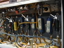| The first thing on the todo list: Replace the electrolytics! After more than fourty years, it's a pretty fair assesment that they would need to be replaced and they did. They were quite dry and crispy.(photo shows new caps installed) |