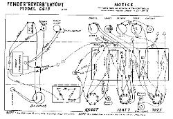 | Click on the images to download the schematic and layout diagram. (just right click on the image and select "save picture as") These are the original schematics for the 6G15 Reverb. I highlighted the caps that are most likely in need of attention and the photos above have arrows pointing to them for reference. |