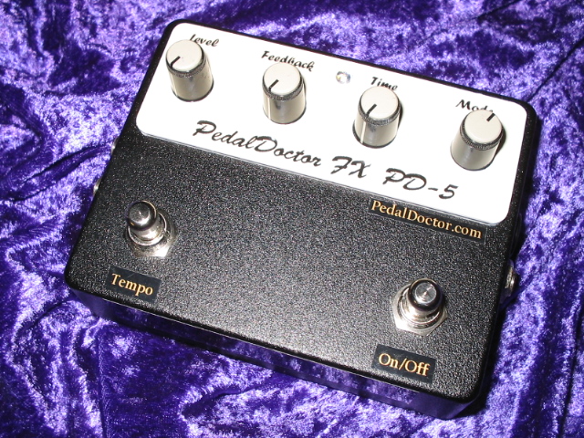 | The "PD-5" mod requires disassembling a Boss DD-5 and modifying it to fit into an aluminum enclosure. At the same time, I add the tap tempo switch to the pedal saving the user the trouble of having to use an external switch and ultimately saving room on the pedalboard. I've also got some other tricks for the PD-5 up my sleeve -more about that later ;-) |