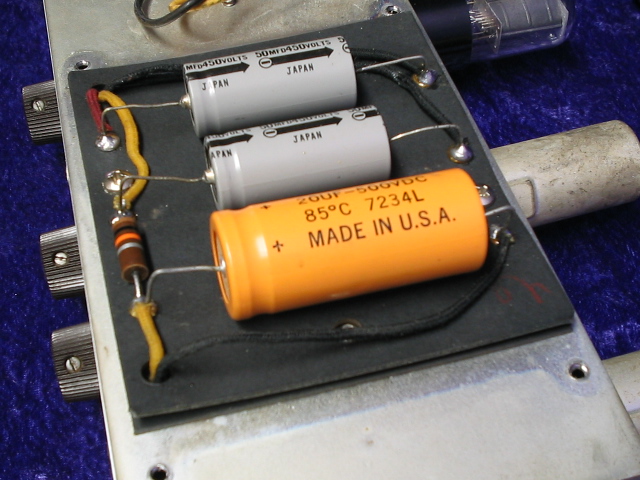 | The first thing on the todo list: Replace the electrolytics! After more than fourty years, it's a pretty fair assesment that they would need to be replaced and they did. They were quite dry and crispy.(photo shows new caps installed) |