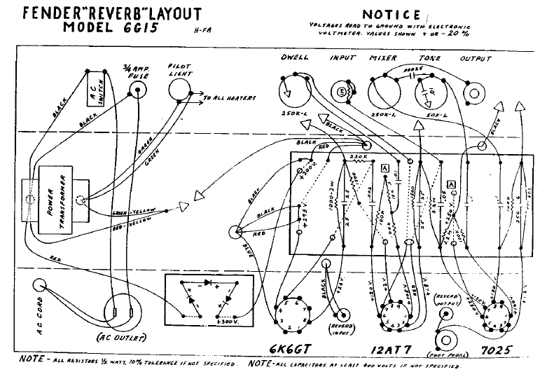 | ...not only does this prevent the 12AX7 from "running amok" if the reverb tank return cable accidentally becomes disconnected, but it also alters the grid return impedance and will produce a much sweeter tone. Quick, Easy, and Cheap; Try It! |